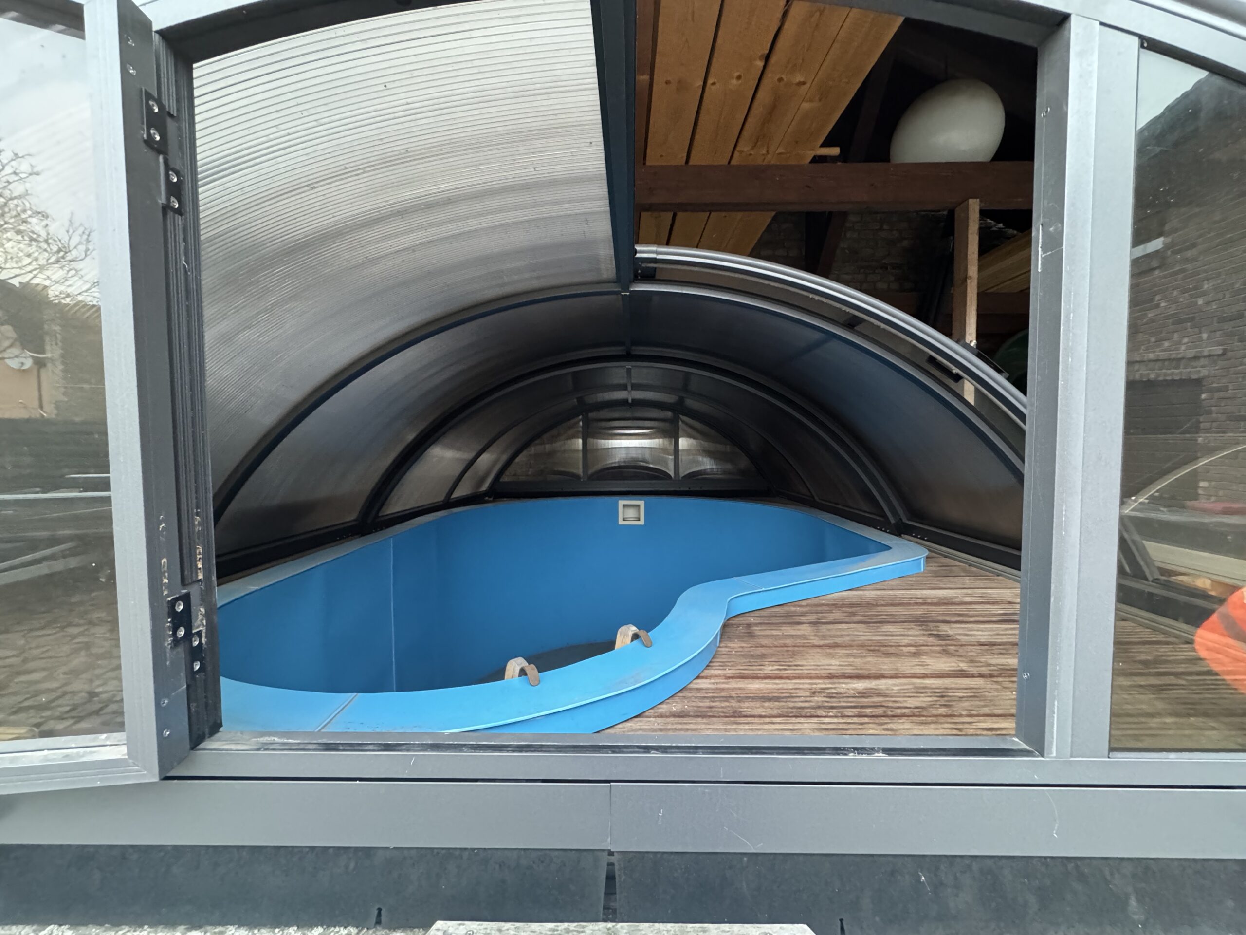 Gebrauchte Pool-Abdeckung als Rundbogen-Überdachung